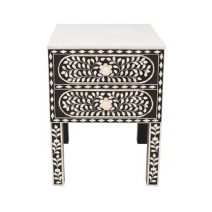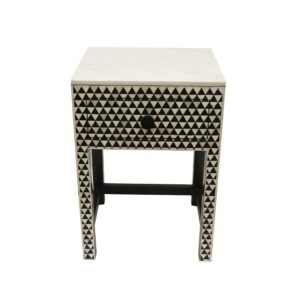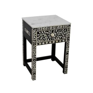Black & White Bone Inlay Bedside Table with Marble Top
