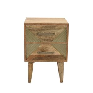 Wooden Bedside Table with Geometric Brass Inlay Drawers