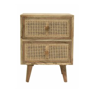 Boho-Chic 2-Drawer Mango Wood Nightstand with Rattan Inlay