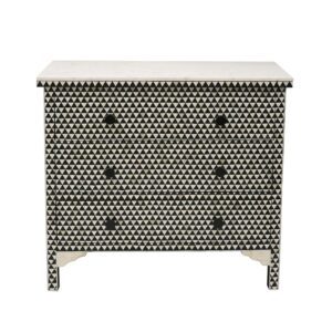 Black & White Geometric Bone Inlay Chest of Drawers with Marble Top