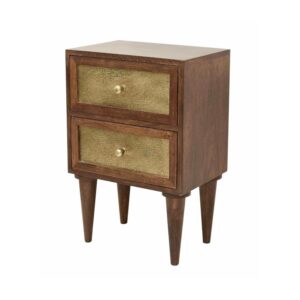 Wooden Bedside Table with Antique Brass Panel Drawers