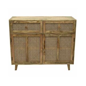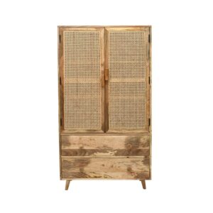 Boho-Chic 2-Door Mango Wood Wardrobe with Rattan Inlay