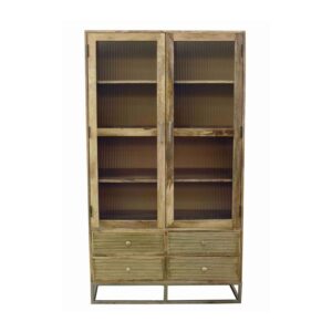 Industrial Mango Wood Display Cabinet with Fluted Glass