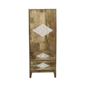 Handcrafted Leaf Inlay 2-Drawer Tall Cabinet