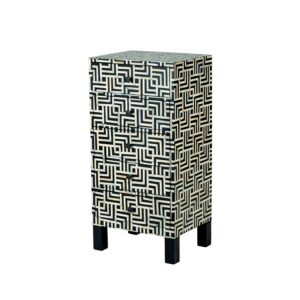 Black & White Geometric Bone Inlay Chest of Drawers with Marble Top