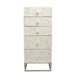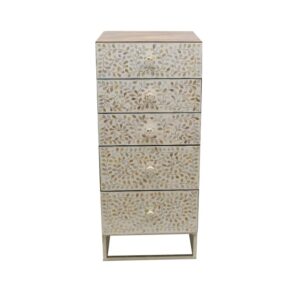 White Bone Inlay Chest of Drawers with Floral Scroll Design