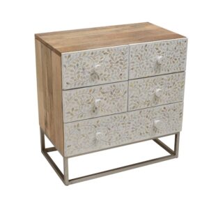 White Bone Inlay 6-Drawer Chest with Floral Scroll Design