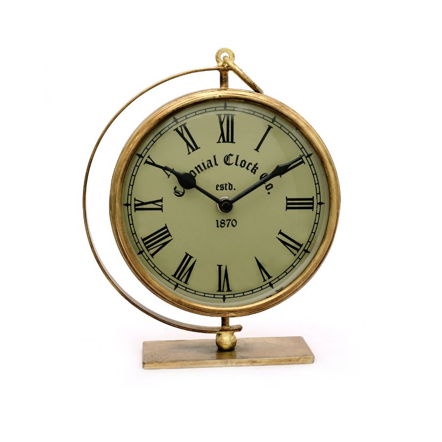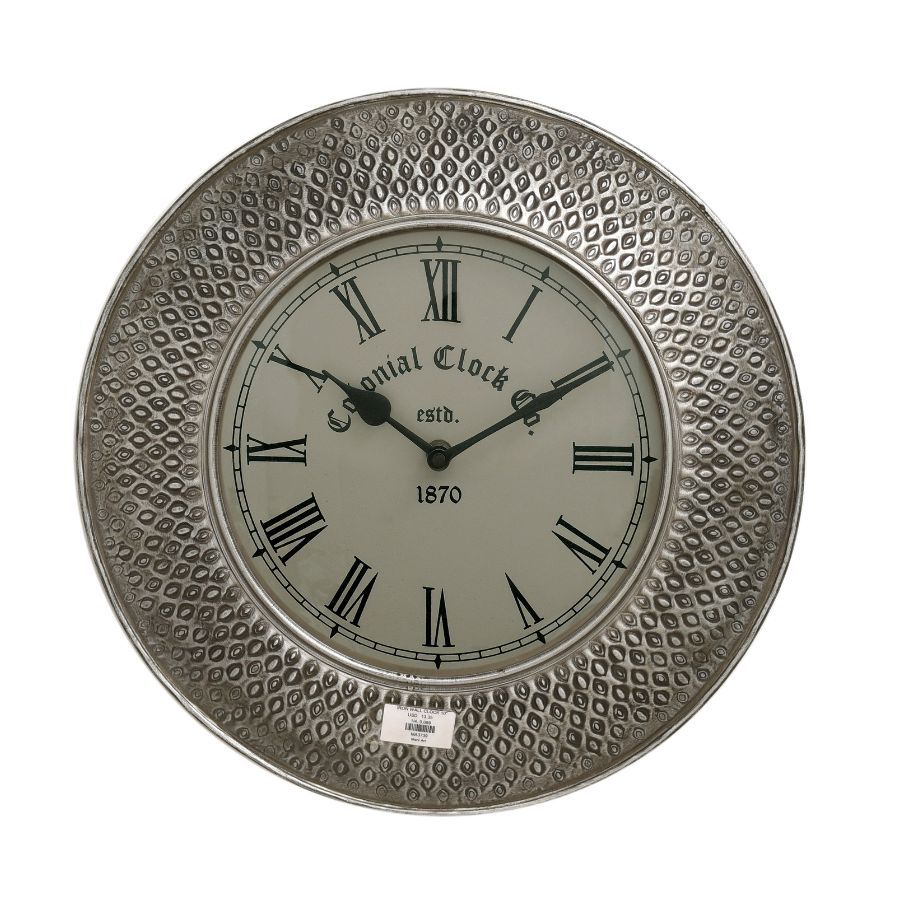 Enhance your décor with this antique brass colonial wall clock, featuring a beautifully engraved frame and a classic Roman numeral dial. The warm brass finish and vintage-inspired detailing create a timeless look that adds elegance and character to any room. Perfect for living rooms, offices, dining areas, or hallways, this clock is both a functional timepiece and a refined decorative accent.