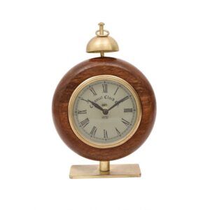 Bring timeless elegance to interiors with this antique brass table clock. Designed with a compact round frame, Roman numeral dial, and classic bell-top style, this piece is both functional and decorative. Its vintage finish makes it a versatile accessory suitable for traditional and contemporary spaces alike.