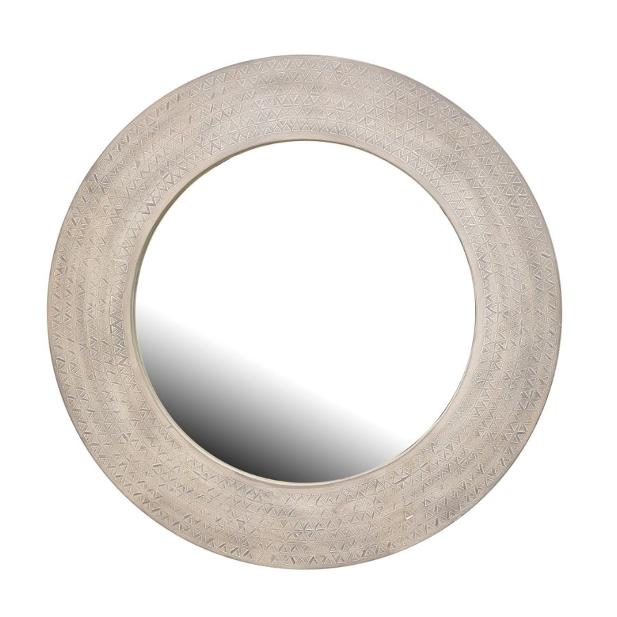 Elevate your interiors with this striking handcrafted wall mirror, framed in an intricate geometric bone inlay pattern. The repeating triangle motif creates a bold, graphic border that beautifully contrasts with the clean reflective surface at the center. Meticulously handmade by skilled artisans, each piece showcases subtle variations that enhance its unique character. Perfect for entryways, living rooms, bedrooms, or dressing areas, this mirror adds depth, light, and timeless sophistication to any space.