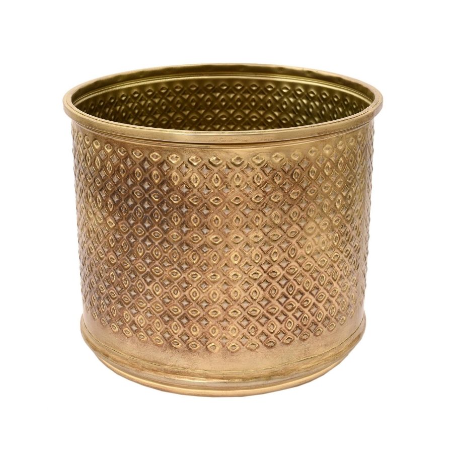 Upgrade indoor and outdoor décor with this set of handcrafted embossed metal planters, finished in a rich golden tone. Featuring a detailed geometric embossed pattern, these planters combine durability with artisanal design, making them a stylish choice for modern as well as traditional spaces.