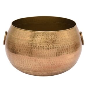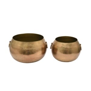 Decorative Embossed Metal Planters with Golden Finish (Set of 2)