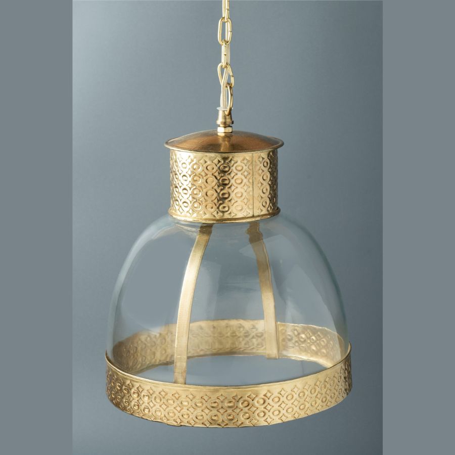 Gold Metal Hanging Pendant Lamp with Perforated Design