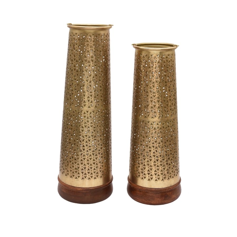 Handcrafted Hammered Metal Vases with Golden Finish (Set of 2)