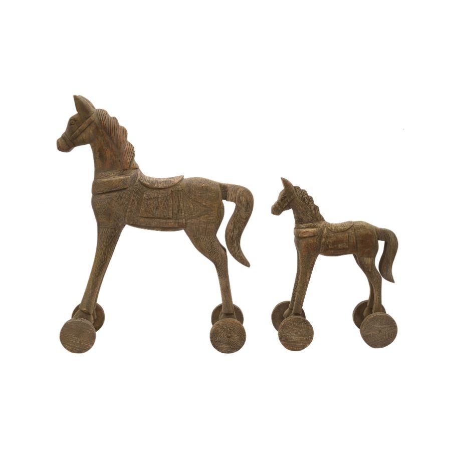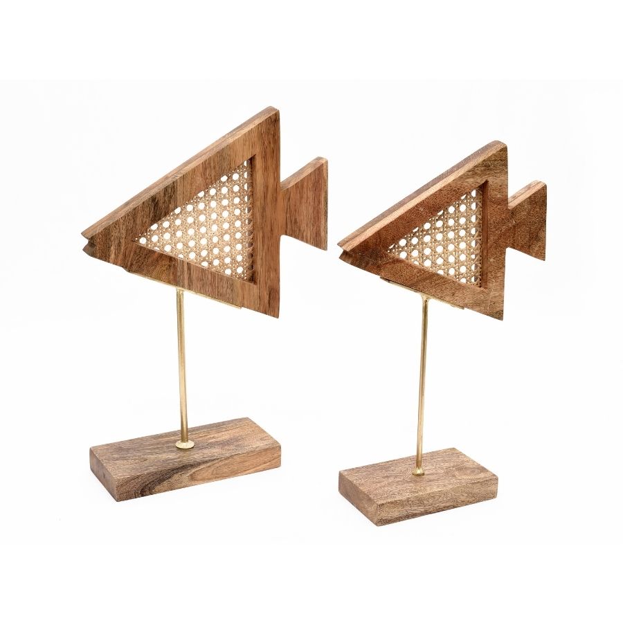 Add an artistic and modern touch to dΓ©cor spaces with this set of 2 handcrafted wooden abstract human figurines. Each sculpture is skillfully carved from natural wood, featuring a textured finish and unique elongated design that highlights elegance and craftsmanship. Mounted on a sturdy round wooden base, these figurines are ideal for contemporary, rustic, or artistic interior settings.
