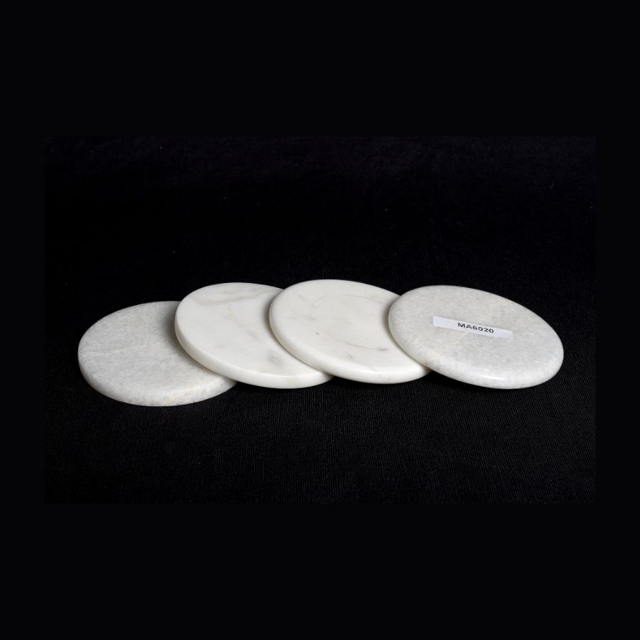 Add a clean, elegant touch to your table with this white marble round coaster set. Made from natural marble with soft, subtle veining, these coasters are perfect for protecting surfaces from heat and moisture while enhancing your décor. Ideal for everyday use or entertaining guests.