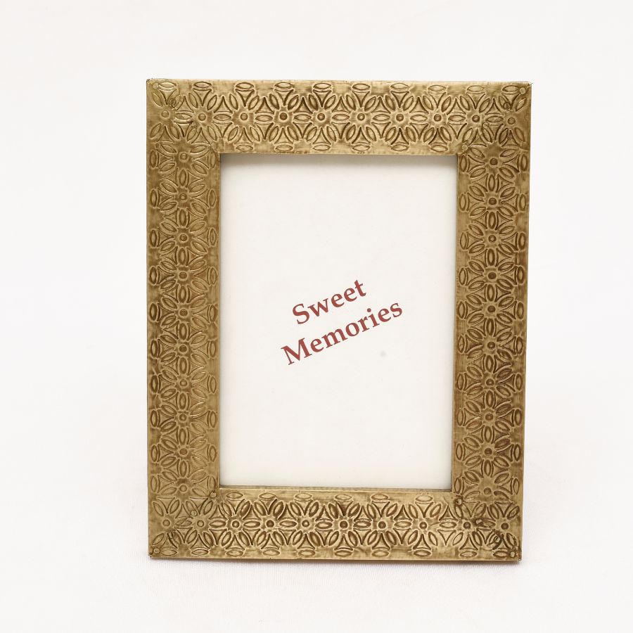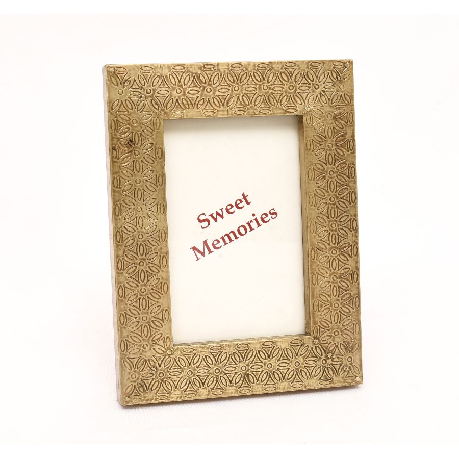 Highlight your favorite memories with this handcrafted golden wooden photo frame set, designed with an embossed floral pattern for a touch of elegance and tradition. The antique golden finish enhances its premium appeal, making it an excellent choice for home dΓ©cor, office tables, hotels, restaurants, galleries, and gifting purposes. Crafted by skilled artisans, these frames combine durability with timeless artistry. Available in 4×6 and 5×7 inch sizes, they are ideal for wholesale and bulk export orders.
