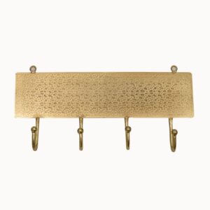 Brass Wall Hook Rack with Textured Plate Design (4 Hooks)