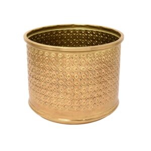 Decorative Embossed Metal Planters with Golden Finish (Set of 2)