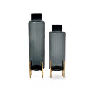 Decorative Glass Vases with Metal Stands (Set of 2)