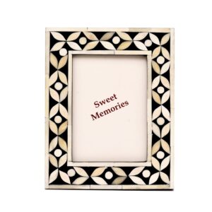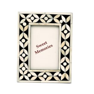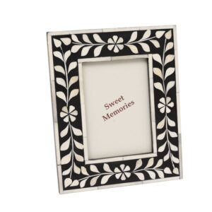 Bone Inlay Photo Frame – Black & White Floral Leaf Pattern