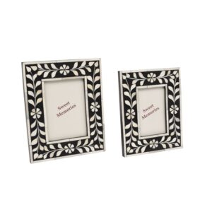 Bone Inlay Photo Frame Set – Black & White Floral Vine Design