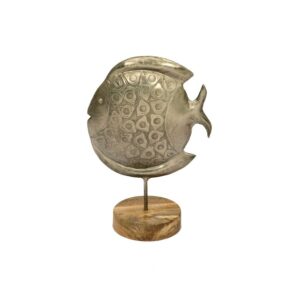 Decorative Metal Fish Figurines on Wooden Base – Set of 2