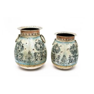 Decorative Metal Planters with Antique Gold & Blue Finish (Set of 2)