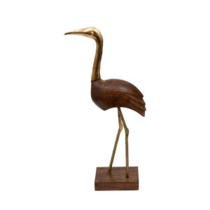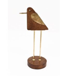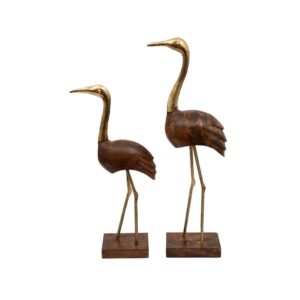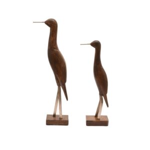 Handcrafted Wooden Bird Figurines with Metal Detailing – Set of 2