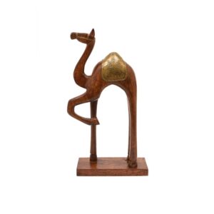 Handcrafted Wooden Camel Figurines with Brass Saddle – Set of 2