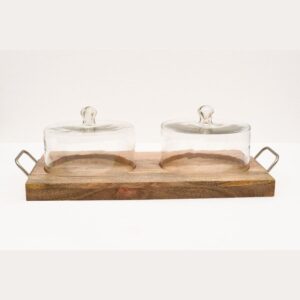Wooden Tray with Glass Jars & Lids (2-Piece Set)