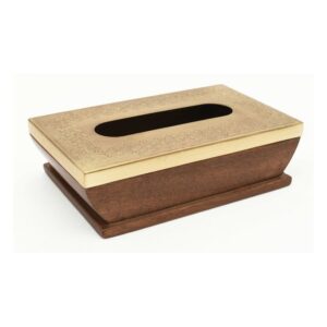 Wooden Tissue Box Holder with Brass Embossed Detailing